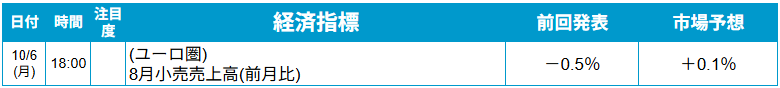 米9月ISM非製造業景況指数は50.0と市場予想(51.7)を下回り、8月の52.0から低下。これを受けて一時ドル売りに傾いたが、米長期金利が上昇したため、ドルも反発した。ISM非製造業景況指数の構成指数のひとつである仕入価格指数が69.4と予想(68.0)に反して8月(69.2)から上昇したことで、インフレの高止まりが意識された。一方、新規受注指数は56.0から50.4に大きく低下した。