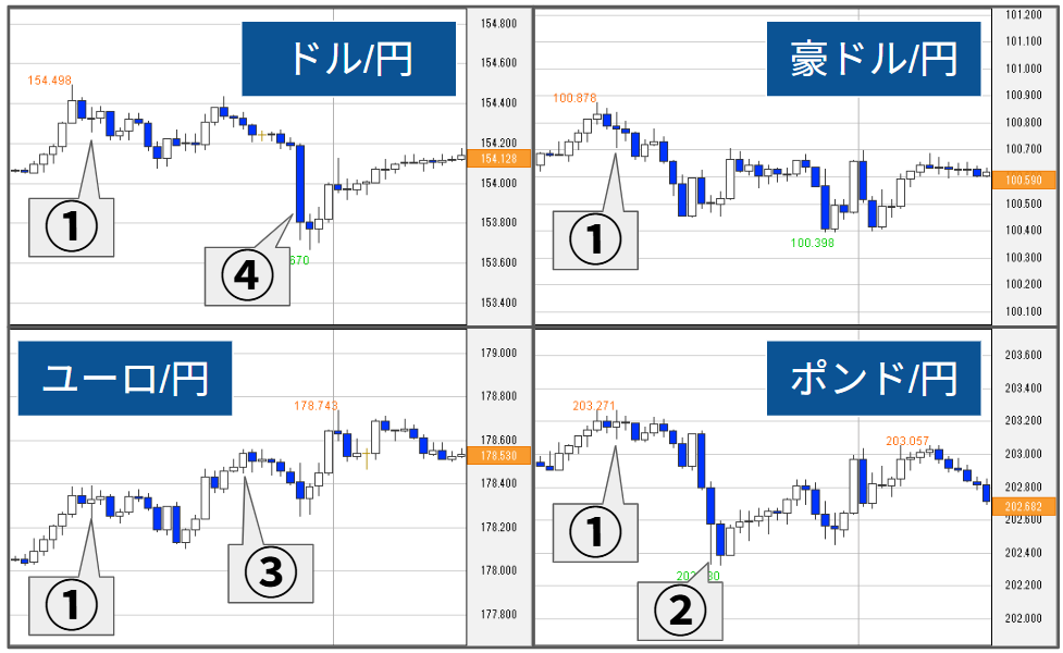 主要通貨ペア(ドル/円、ユーロ/円、豪ドル/円、ポンド/円)について前営業日の値動きをわかりやすく解説し、今後の見通しをお届けします。