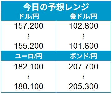 主要通貨ペア(ドル/円、ユーロ/円、豪ドル/円、ポンド/円)について前営業日の値動きをわかりやすく解説し、今後の見通しをお届けします。