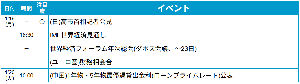 ※「注目の経済指標」「注目のイベント」は注目度が高い順に「◎」「○」「無印」で表示しております。