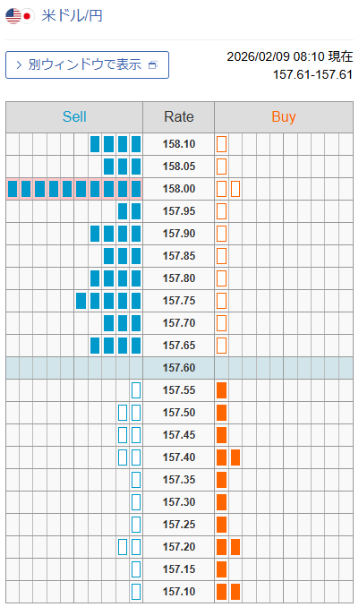 ドル/円 外為注文情報(FX板情報・オーダー状況)
