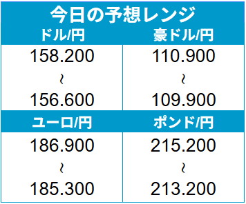 人気通貨ペア 本日の予想レンジ