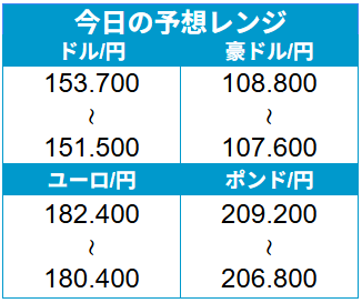 人気通貨ペア 本日の予想レンジ