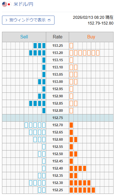 ドル/円 外為注文情報(FX板情報・オーダー状況)