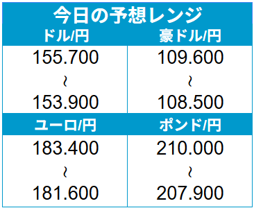 ▼外為注文情報/ ▼本日の見通し/ ▼ドル/円の見通し:155円の攻防へ/ ▼注目の経済指標/ ▼注目のイベント