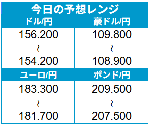 主要通貨ペア(ドル/円、ユーロ/円、豪ドル/円、ポンド/円)について前営業日の値動きをわかりやすく解説し、今後の見通しをお届けします。
