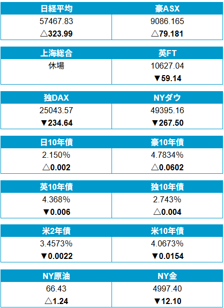 米新規失業保険申請件数は20.6万件と市場予想(22.5万件)を下回った。これにより、4週平均の申請件数は21.9万件となり、前週時点の22.0万件から減少。米労働市場の安定を示したと受け止められてドルが上昇した。一方、同時刻に発表された米12月貿易収支は703億ドルの赤字となり、赤字額は市場予想(555億ドル)を大幅に上回った。2025年通年の貿易赤字は9015億ドルとなり、関税措置にもかかわらず赤字は前年(9035億ドル)からほとんど減少しなかった。