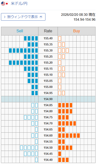 ドル/円 外為注文情報(FX板情報・オーダー状況)