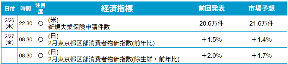 ※「注目の経済指標」「注目のイベント」は注目度が高い順に「◎」「○」「無印」で表示しております。