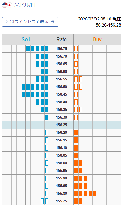 ドル/円 外為注文情報(FX板情報・オーダー状況)