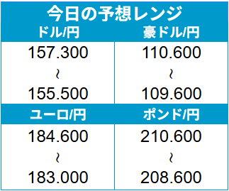 人気通貨ペア 本日の予想レンジ